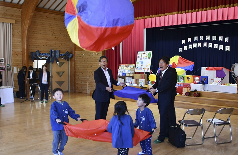 地域と国府小学校が協働で開催する国府演JOY祭が8日同校で行われ、保護者や地域の人、児童など1300人超が来場し、校内は大いに賑わった。