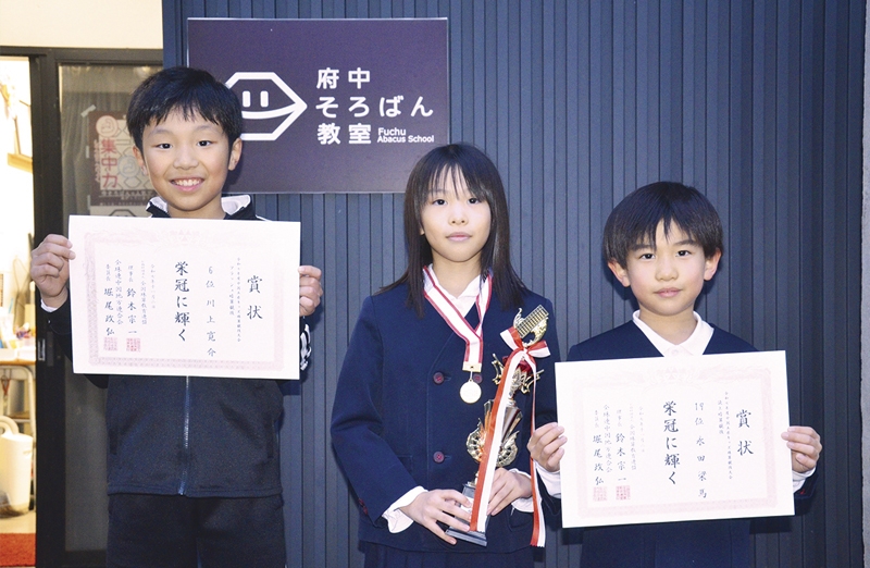 商店街にある府中そろばん教室に通う児童4人が、2日に行われた小学4年生以下を対象にした中国五県キッズ珠算競技大会で種目優勝など好成績を収めた。