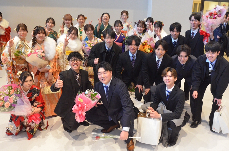 今季最強寒波が到来した11日、改修工事が終わったばかりのジーベックホールで、今年も「20歳の集い」が盛大に行われ、吹きすさぶ吹雪にも負けず晴れ着姿の新二十歳が友人や家族と節目を祝った。