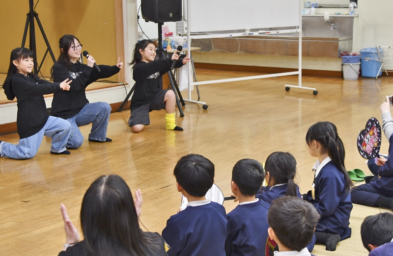令和9年4月に上下北小学校との統合が決まっている上下南小学校で2月27日、絆プロジェクト「JMSライブ!ライブ!」が行われ、全児童と保護者、CS役員がカラオケを楽しんだ。