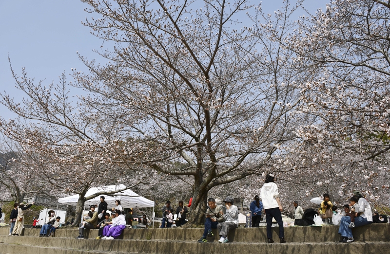 初夏を思わせる陽気に包まれた3月28日、出口町の府中公園で今年初めて「さくらフェスタin府中2026」が開かれ、約200本の桜が満開間近にまで花をほころばせ、池のほとりの特設ステージでは様々なパフォーマンスが繰り広げられた。