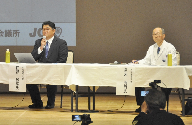 未来をゆだねるのはどちらに 市長選立候補予定者の公開討論会 26日投開票の府中市長選挙を前に11日、立候補予定者2人による公開討論会がジーベックホールで開かれた。