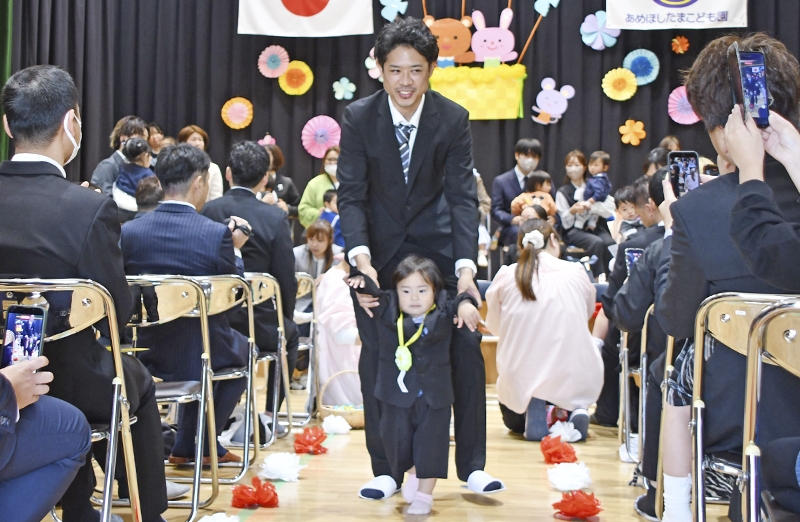 11日、あめほしたまこども園で、第2回入園式・児童発達支援事業所ハッピーテラスキッズにじスターニコルームの開所式が行われた。0歳児~1歳児を中心に4歳児まで37人が入園し、園児数は123人になった。
