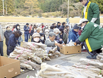 皮が薄く、やわらくて香りのよさが特徴の諸田ごんぼうを買える大人気企画。問合せはJA福山下川辺支店【電話】41―2376へ。