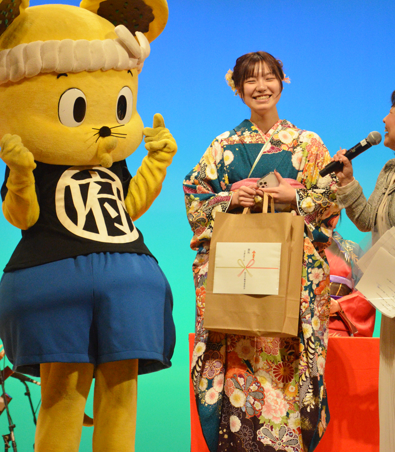 抽選会で1等が当たった能島萌里さんは、大学に送り出してくれた家族に向けて、「感謝しつつ、自分の最善を尽くしていきたい」と思いを。