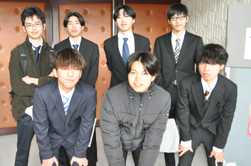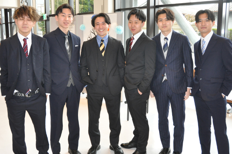 府中学園の同級生たち。市内で働いている小川雅大君(右から3番目)は「みんな元気そうで、そんなに変わらない。自分は今仕事が忙しくて毎日必死で、大人になった実感はない」と社会人として奮闘している様子。