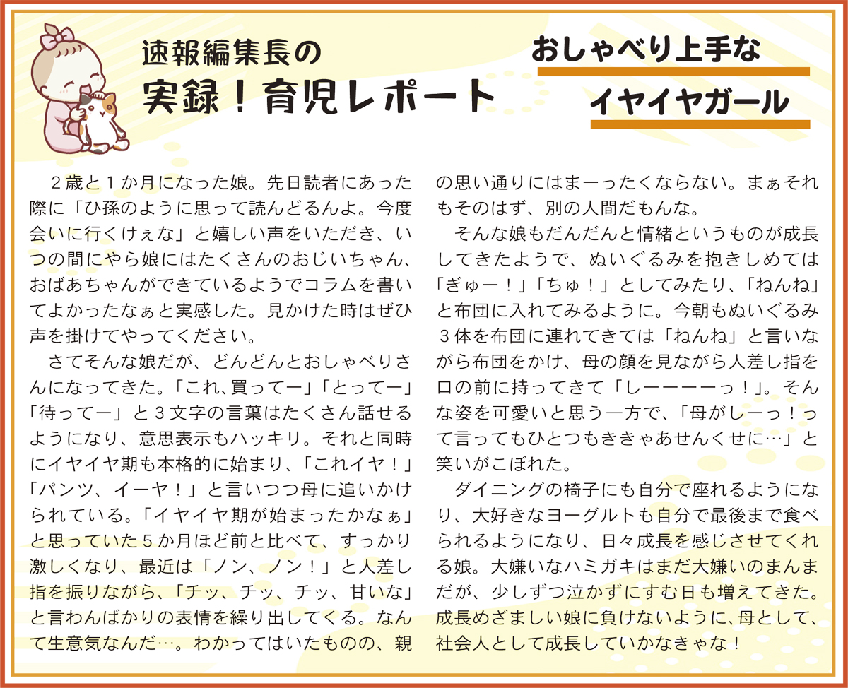 ▲「育児レポート」 第19回(令和06年10月30日号掲載)