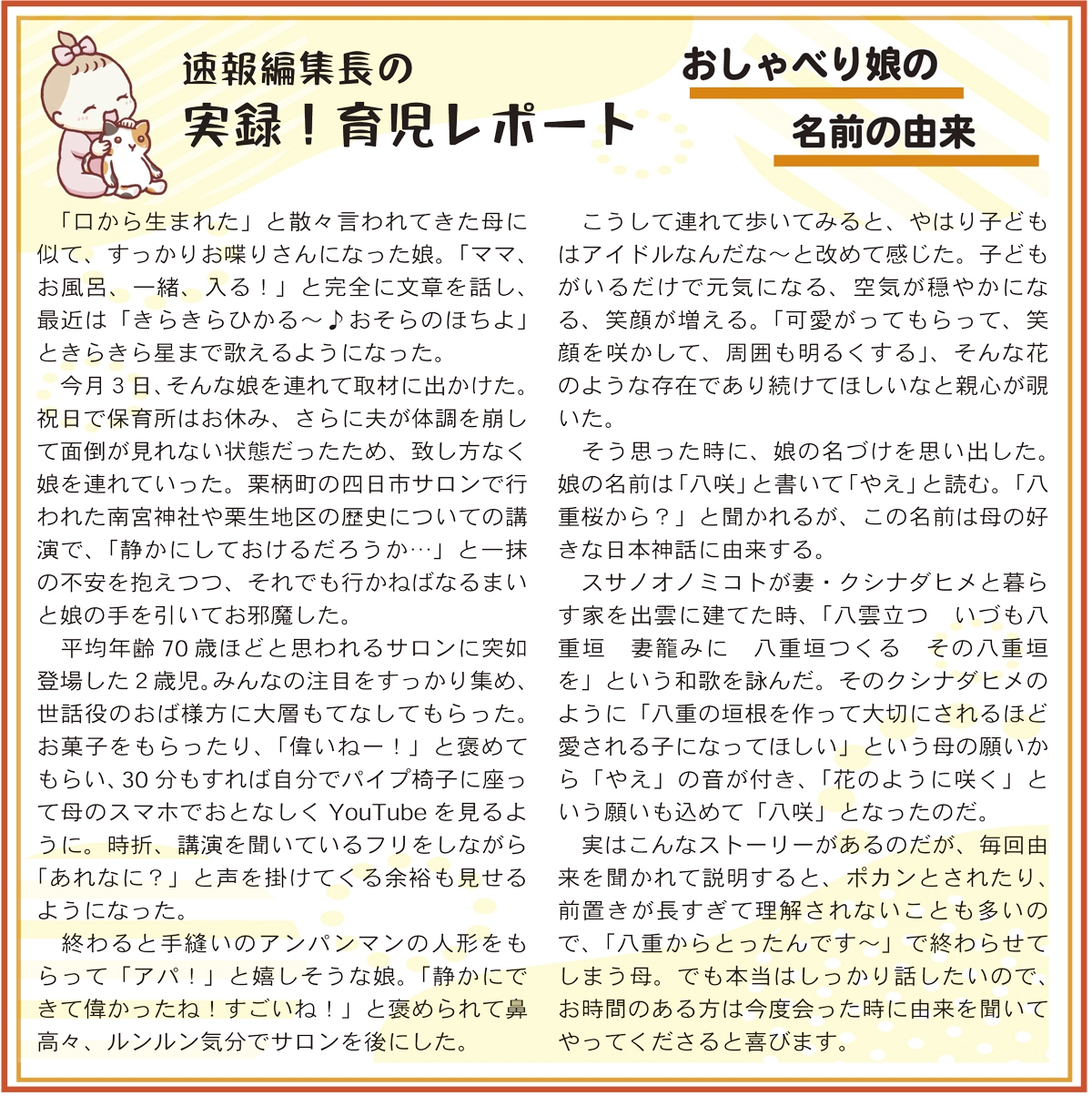 ▲「育児レポート」 第15回(令和06年06月25日号掲載)